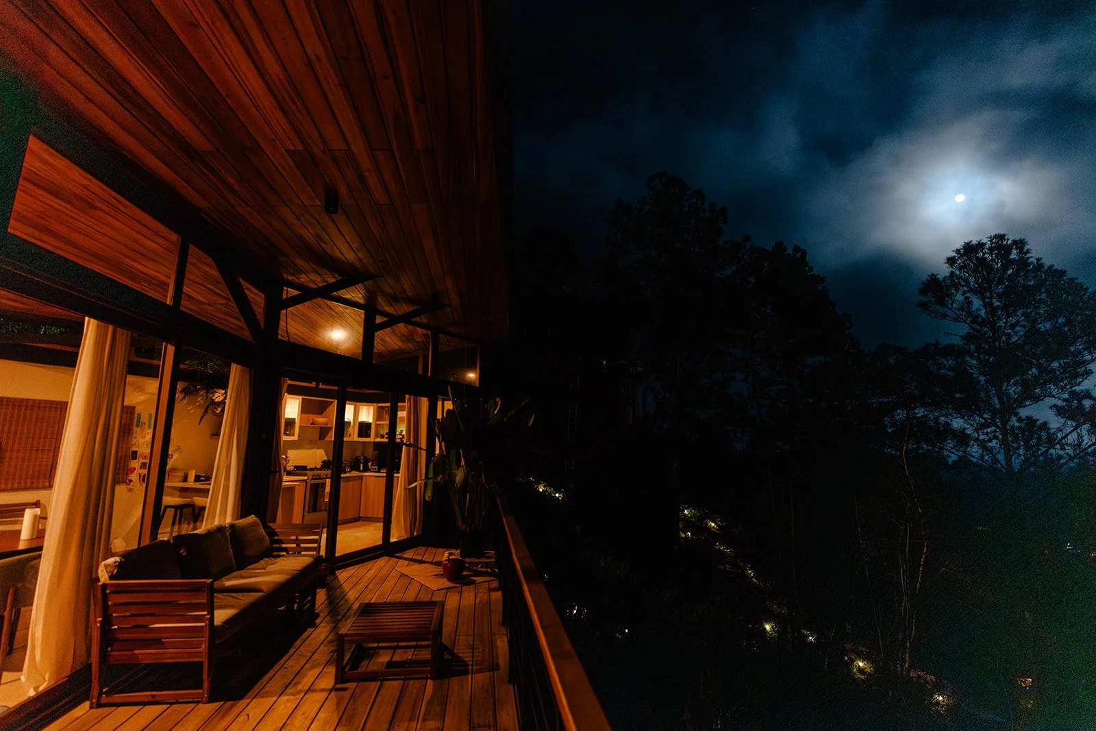 Casa Crisalida includes a fully set up kitchen, one bathroom, two bedrooms, a living room space, a wide outdoor deck overlooking the mountains & a patio and garden space.